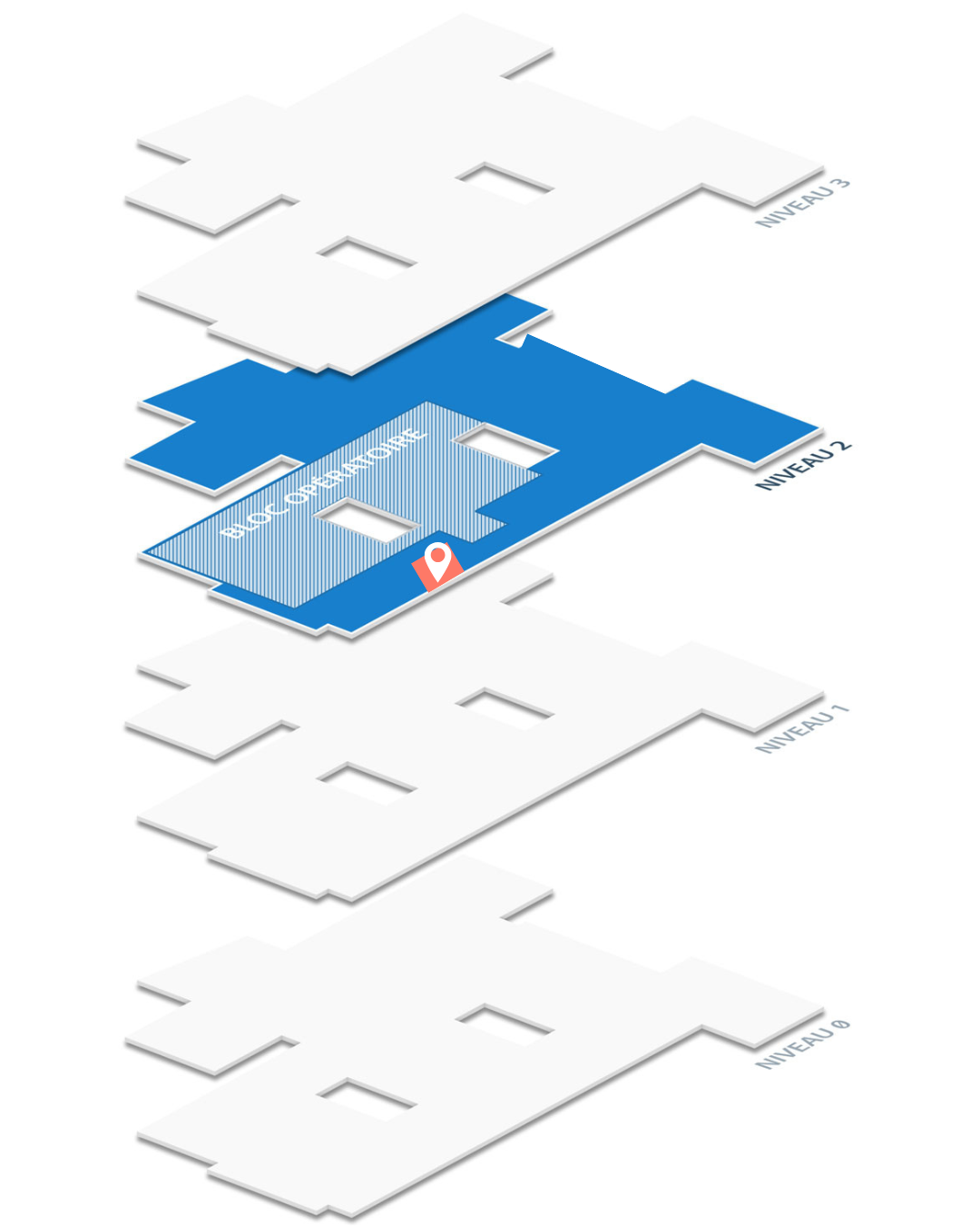 Prendre l’ascenseur qui se situe derrière l’accueil, sur la gauche
